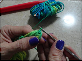 Paso 5. Saca las lazadas unidas a la cadeneta del palito. (Ésta será la primera vuelta de tu bufanda)